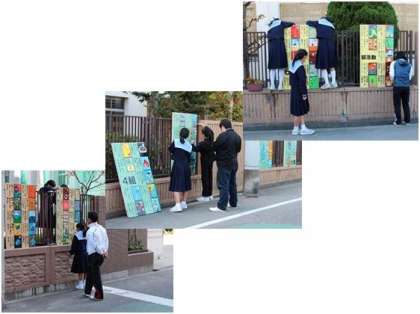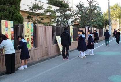 11月25日(金)午後 9月末に69期生(2年生)の「創作カルタ」を外してから、少し寂しかったグリーンロードに、新たに70期生(1年生)の「創作カルタ」を掲出しました。