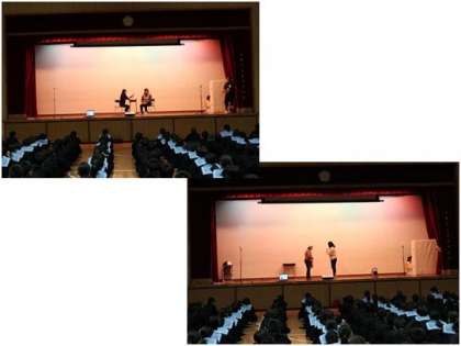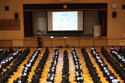 12月9日(金)5限 2年は体育館で、阿倍野区社会福祉協議会及びボランティアの皆さんを講師にお招きし、≪認知症≫について学びました。
