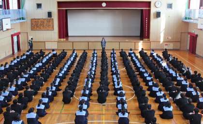 12月19日4限 3年は体育館で「冬休み中の生活」について、全員で確認をしました。