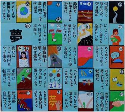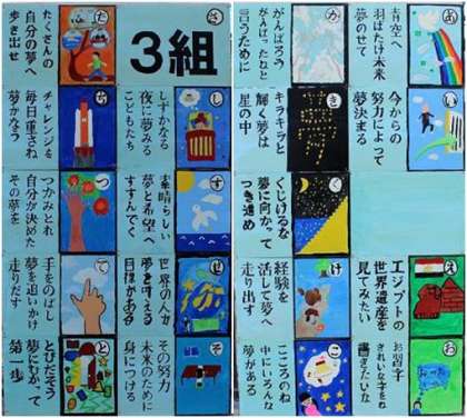1月14日(土) 10月の文化発表会展示の部に発表し、グリーンロードに掲出している1年生(70期生)の「創作かるた」を7回シリーズで紹介いたします。