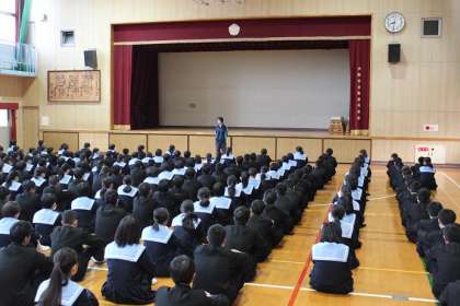 1月19日(木)朝 2年学年集会では、今は3年生が進路決定に向けて一生懸命頑張っている時期ですが、皆さんの1年後の姿に置き換えてみませんか。4月からの最上級生に向けて、この3学期は気持ちを切り替えて、色々なことに真剣に取り組みましょう。という呼びかけを行いました。