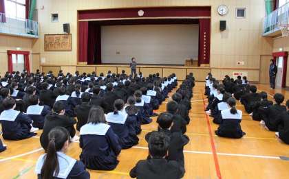 2月9日(木)朝 2年学年集会では「昨日のマラソン大会では2年生としてしっかりと頑張ることができました。しかし、長居公園からの帰路では反省するところもありました。」という話をしました。
