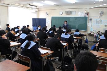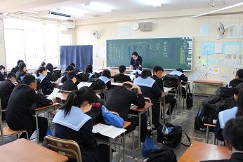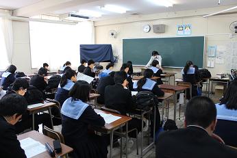 2月9日(木)6限 3年は明日の「私立高校入学試験」に向けて、各教室で担任の先生から「受験の心得」について最終の確認を行いました。