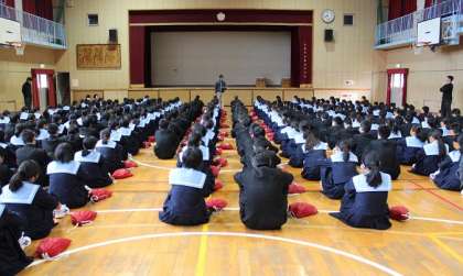 3月3日(金)朝 1年学年集会では、5限に行う「職業講話」の目的や話を聴く姿勢、心構えについて説明を行いました。