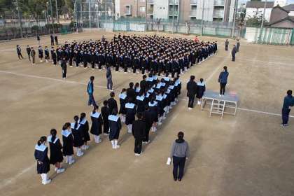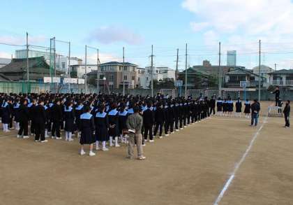 3月7日(火)朝 1・2年はグラウンドで、明日朝に行われる≪3年生を送る会≫の≪リハーサルを行いました。本番と同じく3年生と1・2年生が対面する隊形でリハーサルを行い、3年生へはなむけの気持ちを込めた合唱の練習をしました。