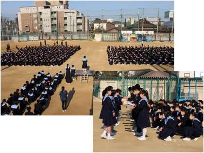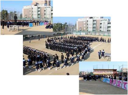 3月8日(水)朝 爽やかに晴れ渡った青空のもと、グラウンドで3年生と1・2年生が対面し≪3年生を送る会≫を行いました。