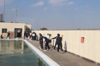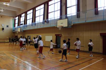 バスケットボール部は、シュートの練習、水泳部は、筋力トレーニングに取り組んでいました!