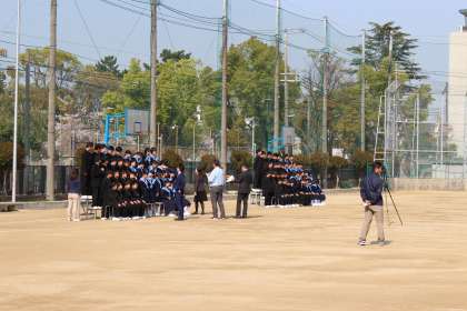 4月14日(金)1限目、爽やかな晴天のもと、グラウンドで「学級写真」を撮影しました。1年1組から2クラスずつ順番に撮影していただきましたので、スムーズに進行して、1限で3学年すべて撮影を終えることができました。