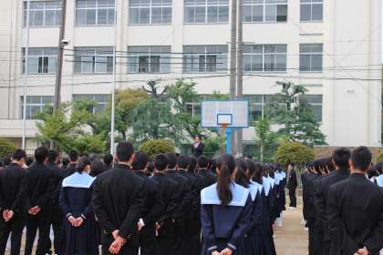 お話ししたように、今皆さんが立っている場所は、70年近く多くの人が学び、汗を流してきた歴史がしみ込んでいる場所です。その歴史と伝統の上に立って、次の新しい阪南中学校を作っていくのは皆さんです。これまで阪南中学校を発展させてきた先輩方に負けないように、しっかりと頑張ってほしいと思います。