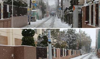 朝からの降雪のため交通機関への影響があり、阪堺電車が運転見合わせとなりました。本校では多くの高校への交通手段が、阪堺電車の利用か徒歩での予定であったため、急遽、地下鉄や市バスに変更をして各高校へ向かいました。