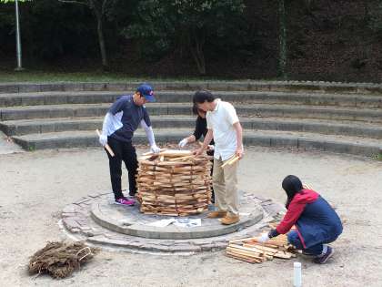 「キャンプファイヤー」の準備に取りかかっています。