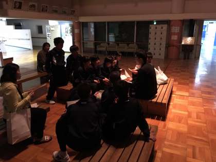 雨天のため、キャンドルファイヤーに変更となり、体育委員が集まり準備を行っています。