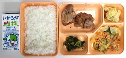 5月30日(火) 給食の献立は、鶏肉の梅香焼き、ツナと野菜の炒めもの、チンゲンサイのおひたし、高野どうふの卵とじ、米飯、牛乳でした。