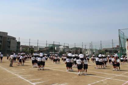学年種目は、「騎馬戦」です。騎馬戦のルール、騎馬の組み方、事故防止についての説明を行い、騎馬をつくり、どのように対戦するのか、騎馬戦の流れを中心に練習を行いました。