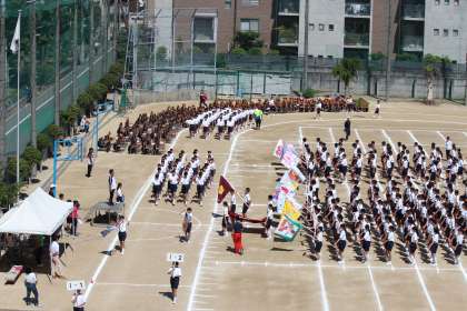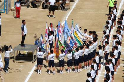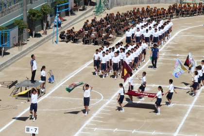入場行進、開会式、各競技、閉会式の練習を行いました。本番に向けて心を一つにしてがんばってください!