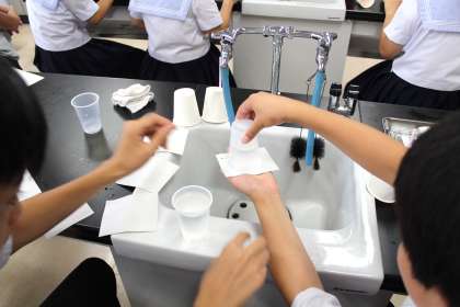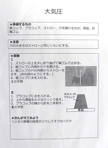水の表面張力と大気圧を組み合わせた実験を行いました。どうして、水がこぼれないんだろう?