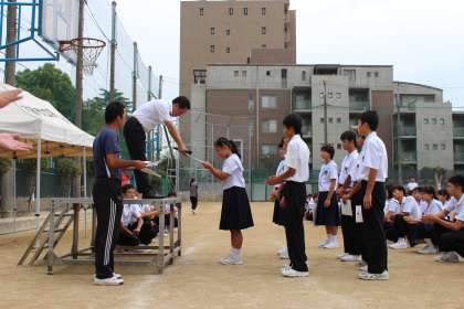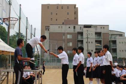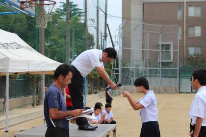 9月4日(月)朝 グラウンドで行われた全校集会では、「柔道ブロック大会」で優勝に輝いた1年女子生徒に、「大阪市ブロック陸上大会:女子総合の部」で第3位に入賞した女子代表部員に、男女とも個人の部各種目で第1位から第3位に入賞した多くの陸上部員に校長先生から表彰状が伝達授与され、全校生徒から大きな祝福の拍手を受けました。