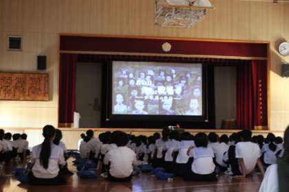 9月9日(土)2限目に体育館でNHKアニメドキュメント「あの日、僕らは戦場で」を鑑賞して、子どもが戦争に利用されていった知られざる歴史を学びました。