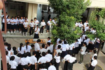 9月13日(水)昼休み、生徒会役員に立候補した生徒たちが、中庭で立候補のあいさつを行いました。