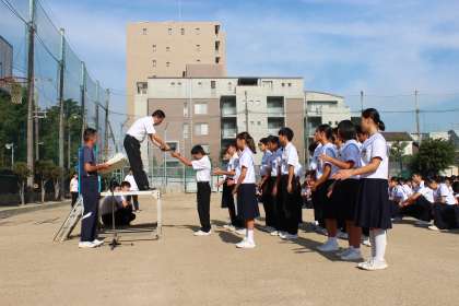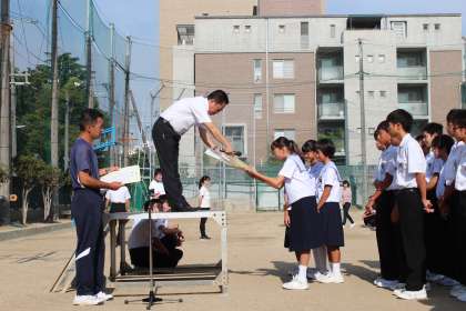 9月19日(火)朝、全校集会で水泳部の生徒たちに校長先生から表彰状が授与され、生徒全員から大きな拍手で祝福されました。おめでとうございます!