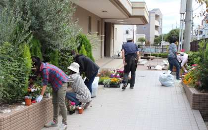 10月4日(水)午前、PTA施設・保健委員会のみなさんが、体育館手前にあるPTA花壇にお花を植えつけてくださいました。季節が変わりさびしくなったところに、色鮮やかなお花が咲き誇っています。植えつけにご協力いただいたみなさん、北風が強く肌寒い中、ありがとうございました。