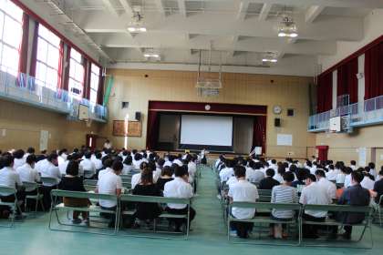 今回、大阪市立中学校の数学科教員が約260名が参加して、公開授業終了後には体育館で研究協議を行いました。