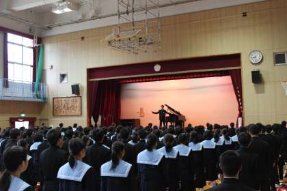 集会では、明日の合唱コンクールで歌う課題曲「マイ バラード」を練習しました。1度目は、声が小さく元気がなかったけど、2度目は、大きな声で歌うことができていました。明日の合唱コンクールでは、さらに素晴らしい歌声を期待したいと思います!