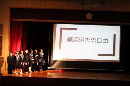4組は、職業選択の自由について、発表を行いました。