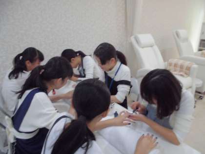 それぞれの体験を終えて、学校へ帰ってきました。今日一日の体験報告が終われば解散です。写真は、幼稚園、ネイルサロンで体験の様子です。