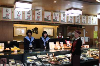 福寿堂秀信では、接客対応のノウハウを学び、笑顔で出迎えてもらいました。美味しい和菓子をいただいたのかなぁ…!