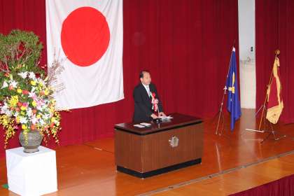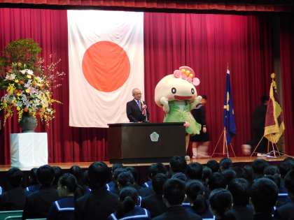 来賓代表として、宝田阿倍野区長兼区担当教育次長様よりご祝辞をいただきました。「あべのん」登場で会場が和みました。