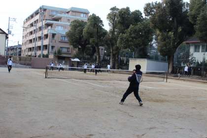 中庭のテニスコートでは男子軟式庭球部が活動していました。