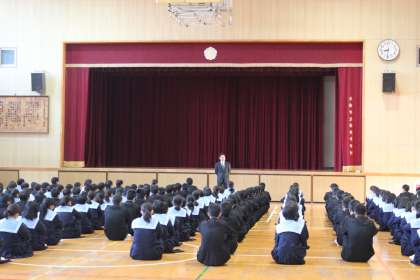 最近、「授業中やかましくて授業に集中できない」と聞いています。これまで体育大会、文化発表会等、みんなでがんばってきたのに、最後の最後になって、とてもさみしく感じます。69期生が気持ちを一つにして、最後までがんばっていこう!そして、「いい卒業式にしましょう」と、お話がありました。