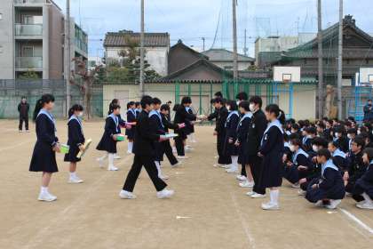 3月8日(木)朝、生徒会と各学級2名からなる「3年生を送る会」実行委員会の主催で、「3年生を送る会」が開催されました。