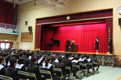 3年生は、卒業式「式の練習」を始めました。公立高校一般選抜を控えて、まだまだ「卒業する実感」がわかない様子でした。