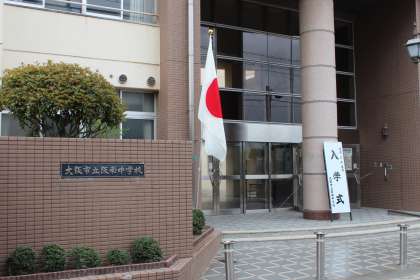 新入生は、朝から曇り空で時折の小雨が降るお天気の中、初登校となりました。今日から第72期生「阪中健児」として、261名が新たな出発点に立ちました。