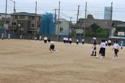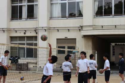 男子バレー部は、低めのネットを利用してのスパイク練習です。