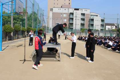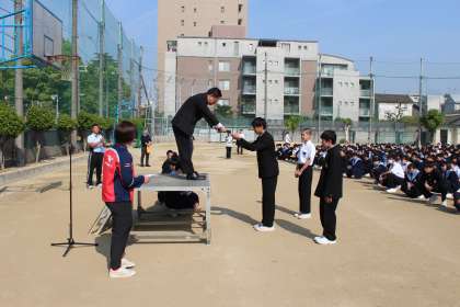 5月1日(火)朝、全校集会で「平成30年度前期学級役員」認証式が行われ、各学年1組の男子学級代表に認証状が授与されました。生徒のみなさん、それぞれの役割をしっかりがんばってください!