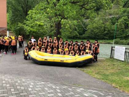 修学旅行 1日目 ラフティング前の集合写真