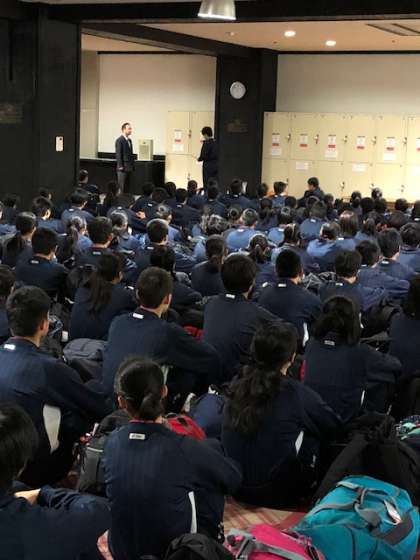 朝食を終えて、代表生徒がお世話になったホテルの代表者に感謝の言葉を述べて、退館式を行いました。