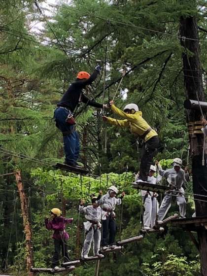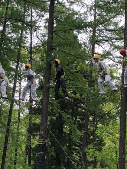 インストラクターから説明を受け、それぞれハイエレメント、ローエレメントに分かれて挑戦します。