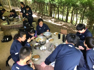 美味しく出来上がったカレーをいただいています。