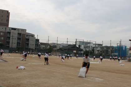 5月17日(木)放課後、野球部、陸上部、サッカー部の部員が協力して、「にがり」をまいてくれました。生徒のみなさん、本当に暑い中お疲れ様でした。