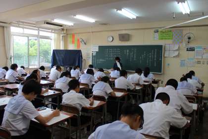 6月15日(金)3年は、9月から始まる実力テストに向けて、中学校で今までに学習した範囲から出題された『復習テスト(国語・理科・社会・数学・英語)』に取り組みました。英語ではリスニングテストも行いました。