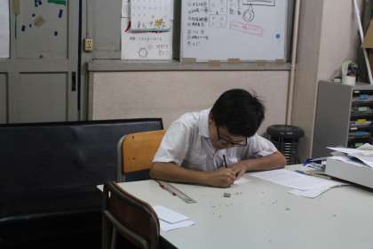 のぞいてみると生徒会役員が新聞の原稿を書いています。