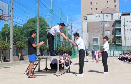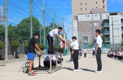 7月9日(月)朝、全校集会で大阪市春季総合体育大会卓球部男子個人の部において、3年Sくんが優勝、S君が3位の成績をおさめましたので、校長先生から表彰状が授与され、生徒全員から大きな拍手で祝福されました。おめでとうございます!