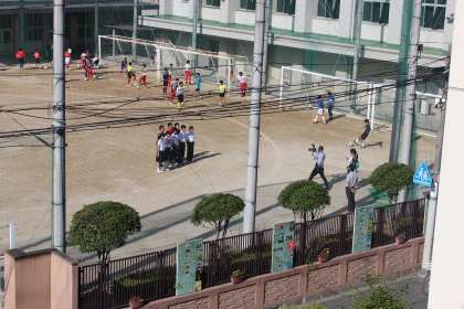 再び運動場東側を見ると、本日2回目の登場(偶然です)の生徒会執行部のメンバーが卒業アルバム用の写真を撮ってもらっています。