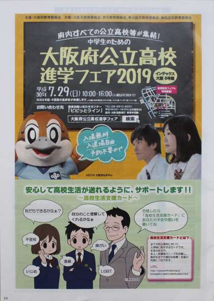 また、7/29(日)にインテックス大阪6号館において大阪府の公立高等学校の全校が集まった、進学フェアが開催されます。こちらにも行かれることをおすすめいたします。(交通機関・会場とも、毎年かなりの混雑です)