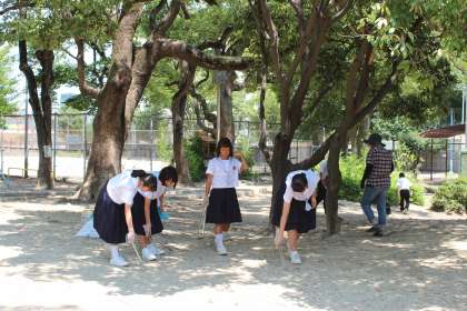 日頃には清掃できなかった校舎内、学校周辺の道路や隣接する公園などをグループに分かれて清掃しました。猛暑の中、お疲れ様でした。