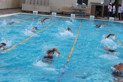 プールの中なのでわからないと思いますが、みんなよく日焼けしています。